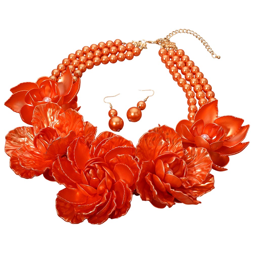 • An elegant statement necklace set featuring layered floral accents and coordinating earrings with an adjustable fit. Designed to elevate formal looks, weddings, parties, and special occasions, offering graceful style and standout detail for memorable outfits.
