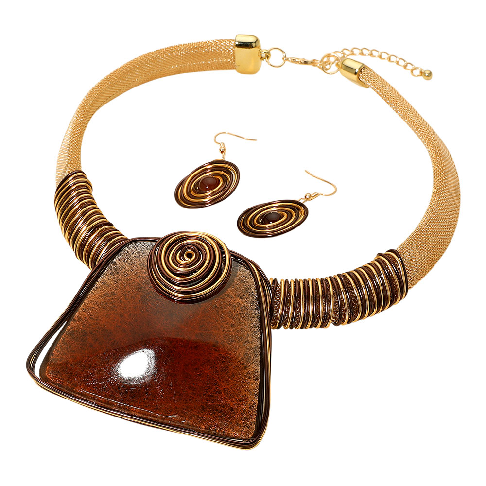 Details • Necklace Size : 18.5" + 2" L • Decor Size : 3.25" L • Earrings Size : 2.25" L • Elevate your look with this striking statement necklace and matching earrings, featuring a bold geometric pendant and artistic swirl design. Perfect for special occasions, evening wear, or adding a touch of elegance to everyday outfits. • Lead and Nickel Compliant
