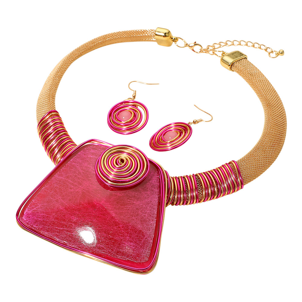 Details • Necklace Size : 18.5" + 2" L • Decor Size : 3.25" L • Earrings Size : 2.25" L • Elevate your look with this striking statement necklace and matching earrings, featuring a bold geometric pendant and artistic swirl design. Perfect for special occasions, evening wear, or adding a touch of elegance to everyday outfits. • Lead and Nickel Compliant