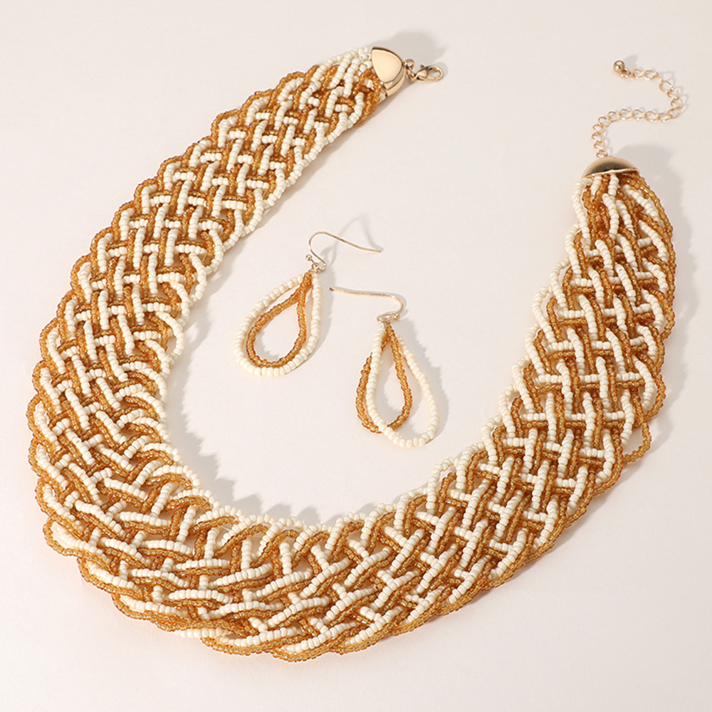 3PCS - Rhinestone Pave Necklace Clip On Earring Jewelry Set