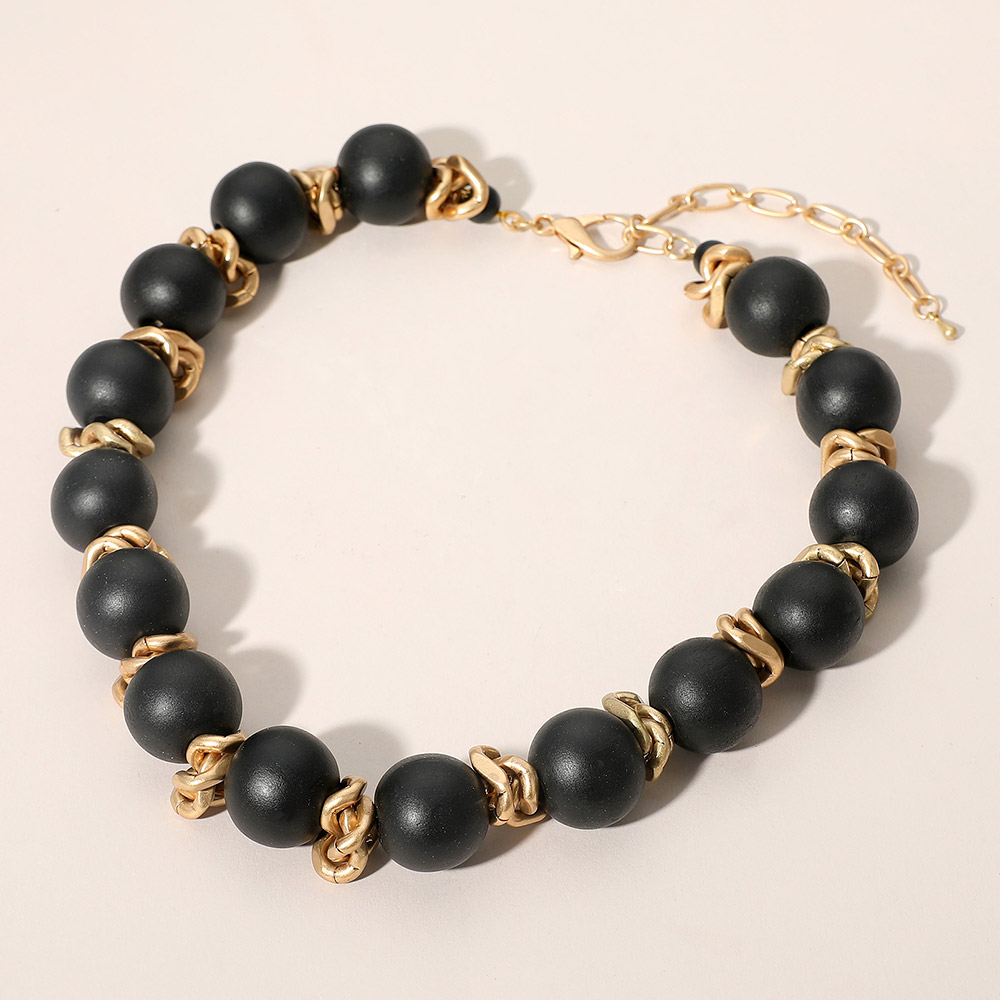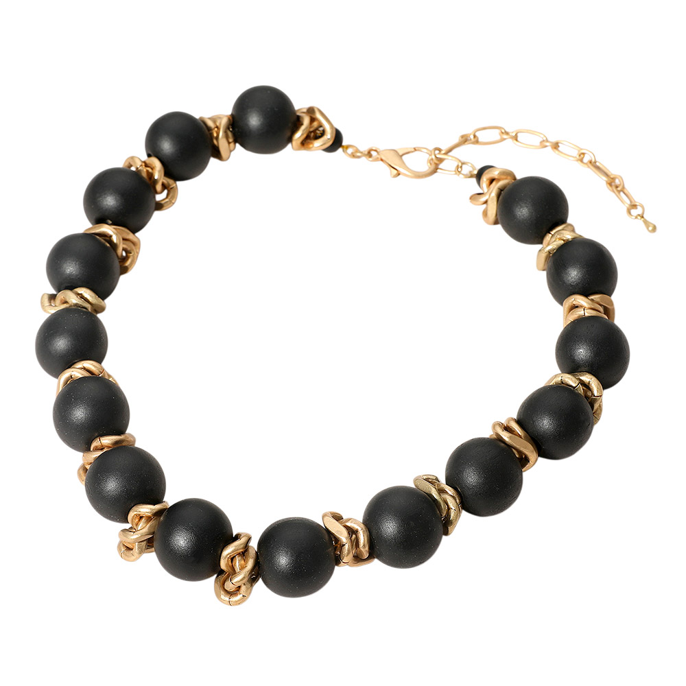 Details • Necklace Size : 17" + 3" L • Decor Size : 0.75" L • Make a striking impression with this bold beaded necklace featuring smooth round beads and interlinked chain accents. Designed for a confident, fashion-forward look, it’s a versatile accessory perfect for elevating casual outfits or adding sophistication to evening wear. • Lead and Nickel Compliant