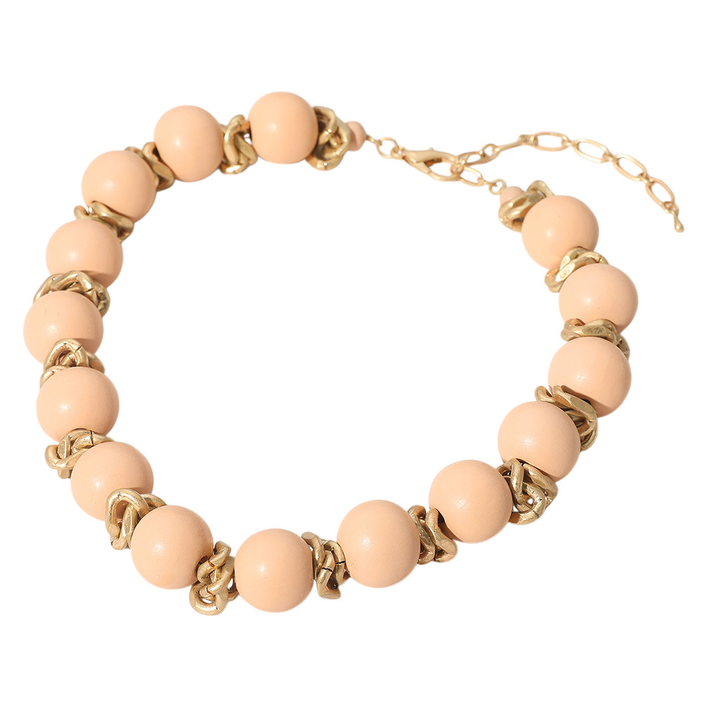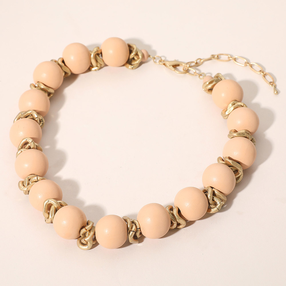 Details • Necklace Size : 17" + 3" L • Decor Size : 0.75" L • Make a striking impression with this bold beaded necklace featuring smooth round beads and interlinked chain accents. Designed for a confident, fashion-forward look, it’s a versatile accessory perfect for elevating casual outfits or adding sophistication to evening wear. • Lead and Nickel Compliant