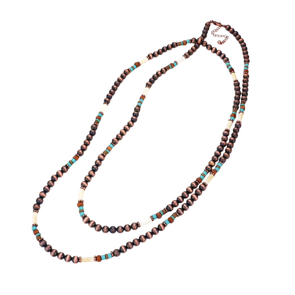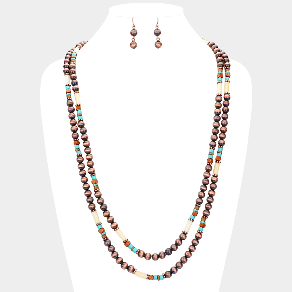 Wood Heishi Beaded Abalone Crescent Pendant Triple Layered Pendant Necklace