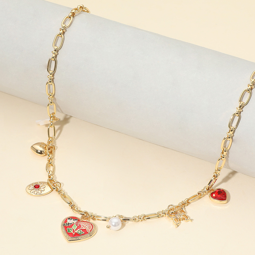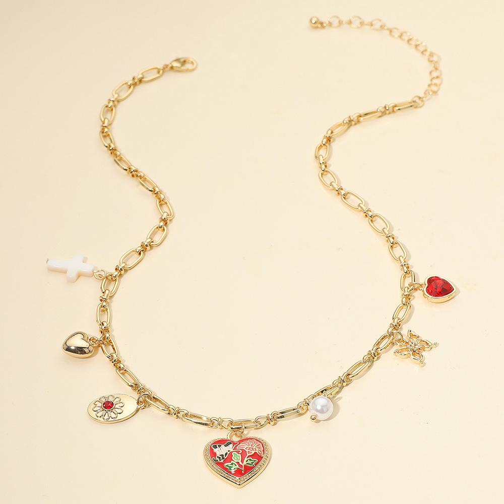 Butterfly Flower Enamel Detailed Heart Pendant Charm Station Necklace Butterfly Flower Enamel Detailed Heart Pendant Charm Station Necklace Butterfly Flower Enamel Detailed Heart Pendant Charm Station Necklace