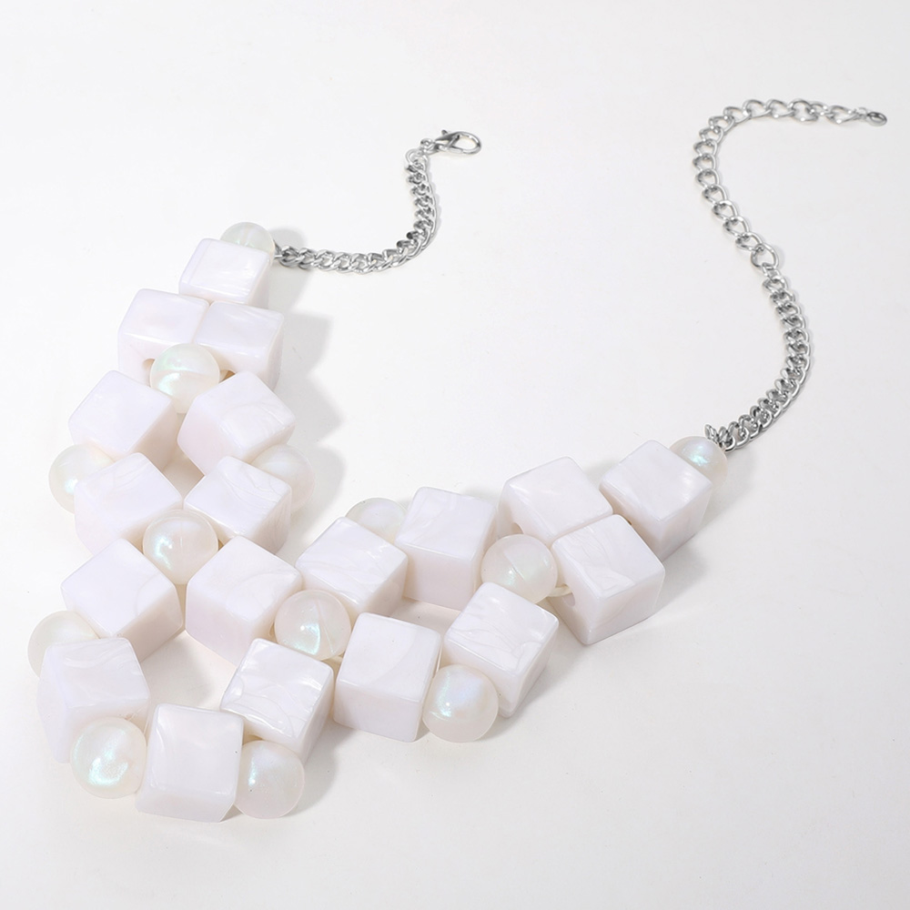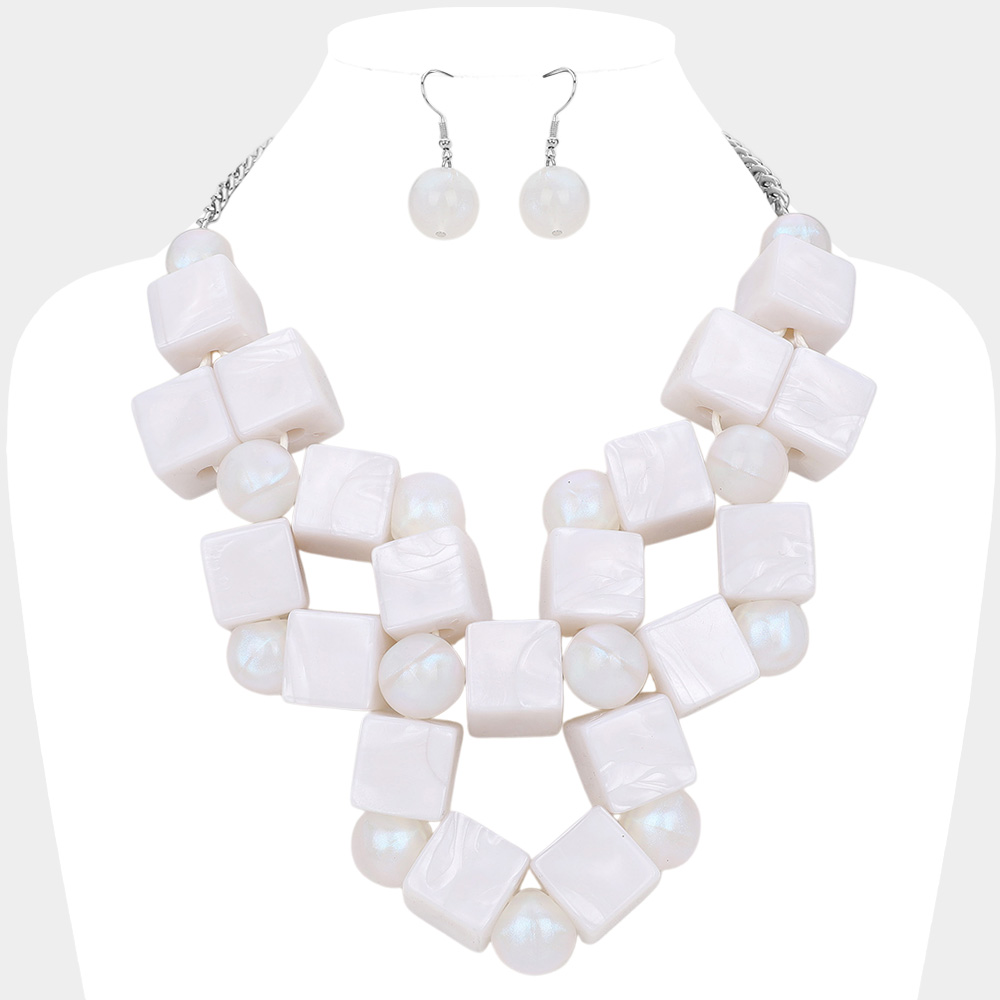Celluloid Acetate Cube Ball Beaded Abstract Statement Necklace
