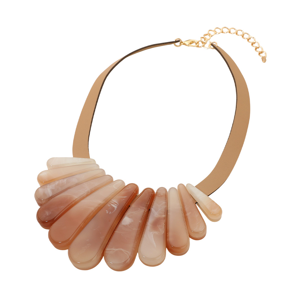 Celluloid Acetate Marbled Plate Faux Leather Statement Necklace