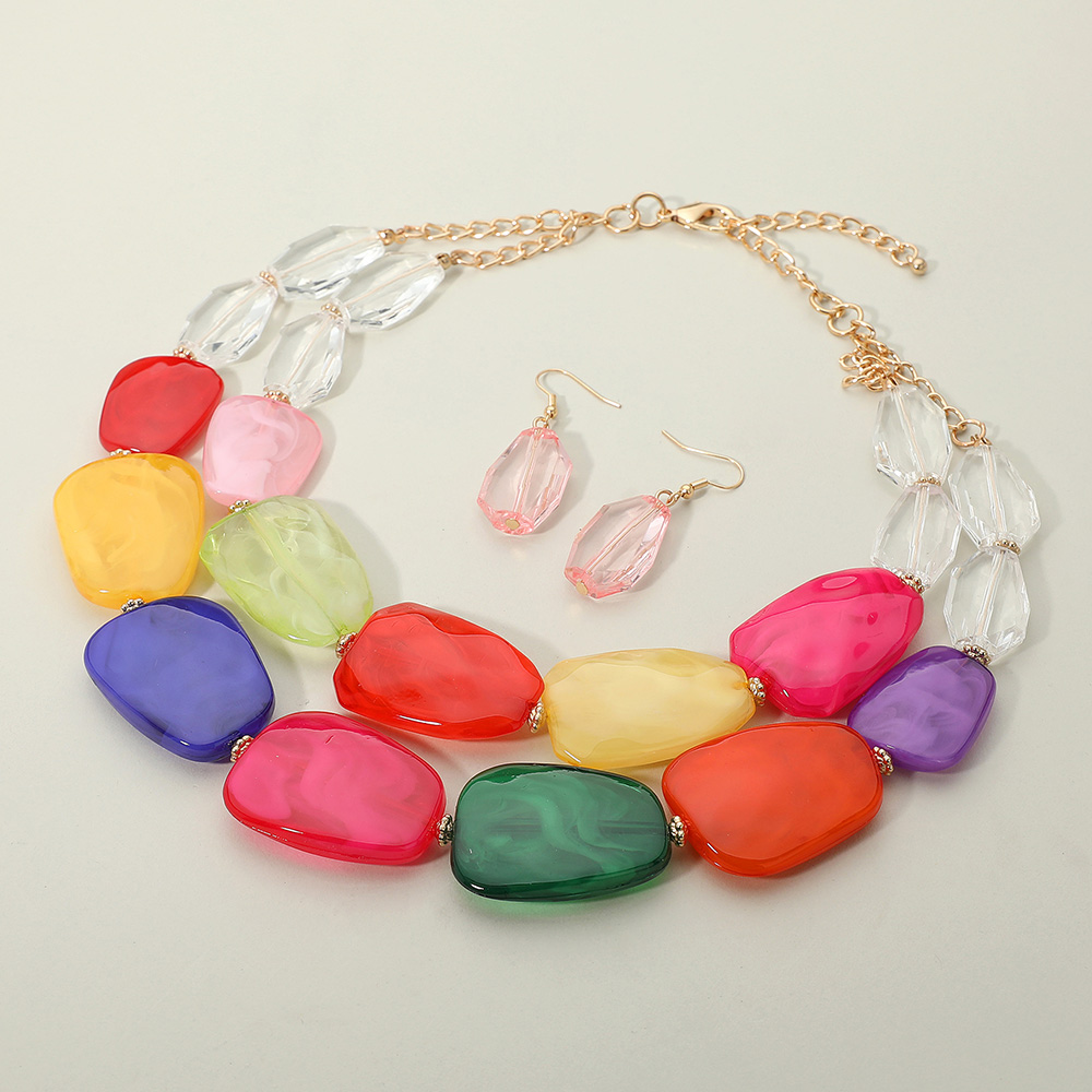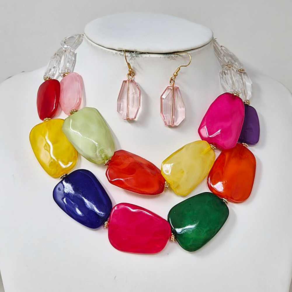 Chunky Abstract Resin Beaded Layered Statement Necklace