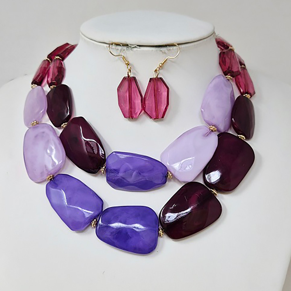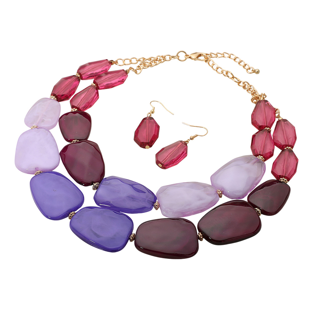 Chunky Abstract Resin Beaded Layered Statement Necklace