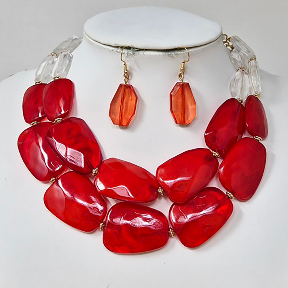 Chunky Abstract Resin Beaded Layered Statement Necklace