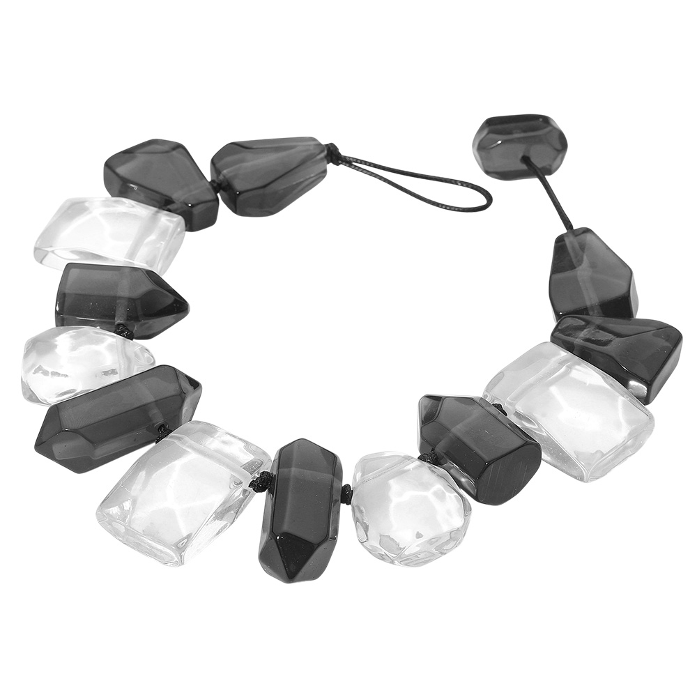 Details • Necklace Size : 16" + 2" L • Decor Size : 1.5" L • Stand out with this chunky geometric beaded necklace featuring alternating faceted shapes for a modern statement look. Perfect for parties, casual outfits, or special occasions, this bold accessory adds contemporary flair and artistic style to any wardrobe. • Lead and Nickel Compliant
