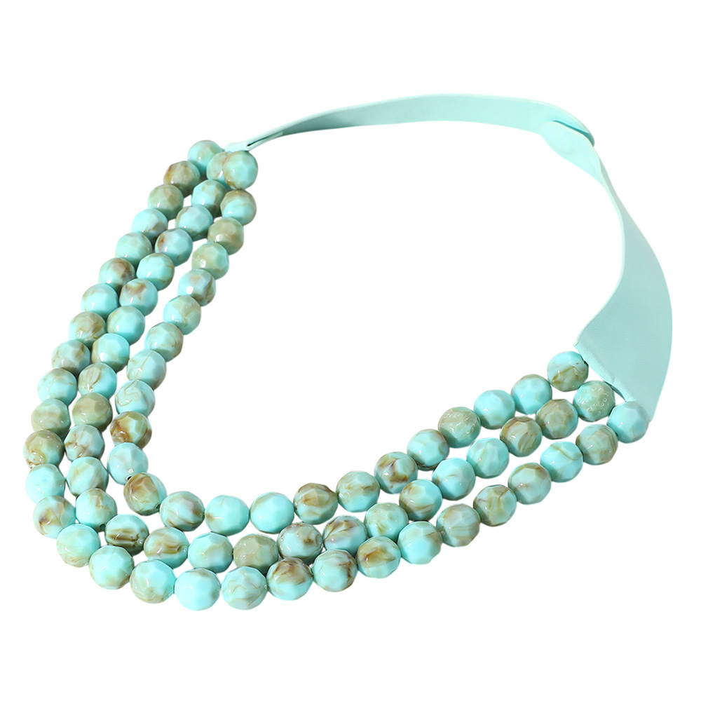 Chunky Acrylic Beaded Triple Layered Faux Leather Magnetic Necklace