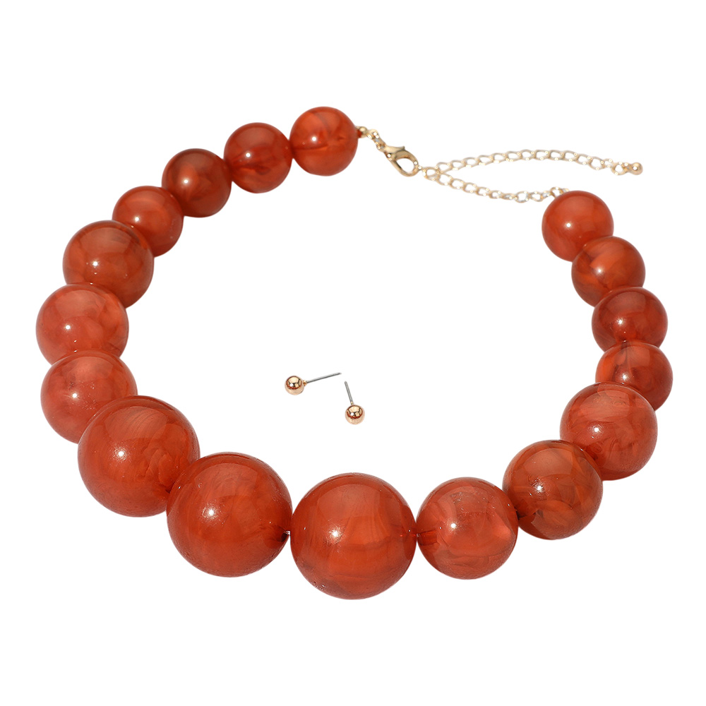 Chunky Marbled Ball Beaded Bold Statement Necklace