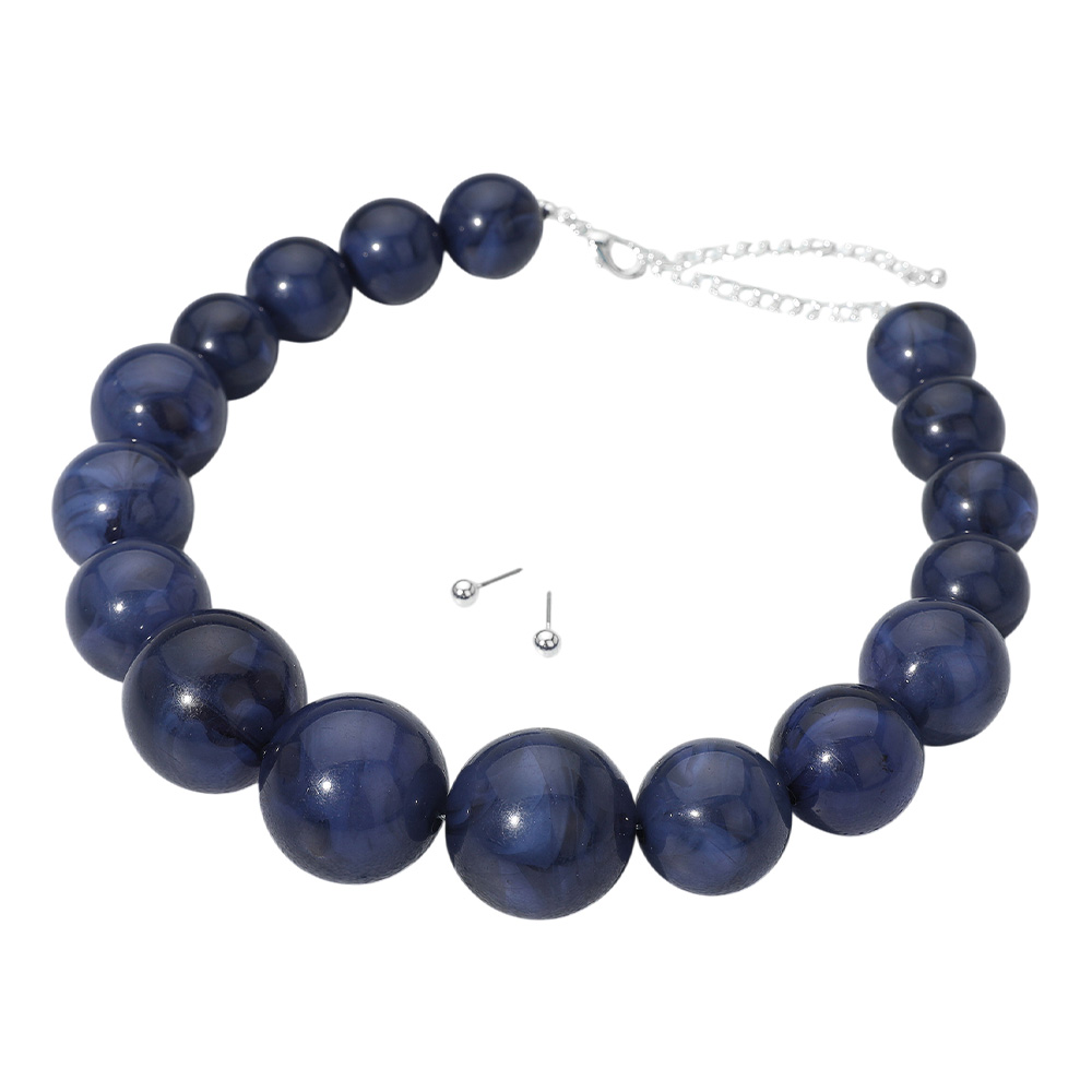 Details • Necklace Size : 16.5" + 4.5" L • Decor Size : 1.25" L • Earrings Size : 0.1" L • Elevate your look with this chunky beaded necklace and matching stud earrings set. Featuring oversized round beads and adjustable length, this statement piece adds bold style to casual or formal outfits. Perfect for parties, events, or everyday fashion, it’s a must-have for your jewelry collection. • Lead and Nickel Compliant