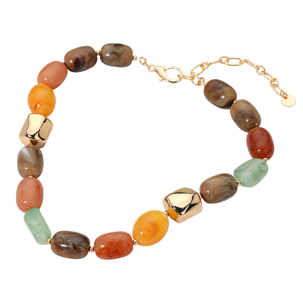 Chunky Marbled Resin Metal Pebble Beaded Necklace Chunky Marbled Resin Metal Pebble Beaded Necklace
