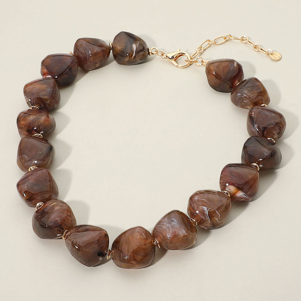 Chunky Marbled Resin Pebble Beaded Statement Necklace