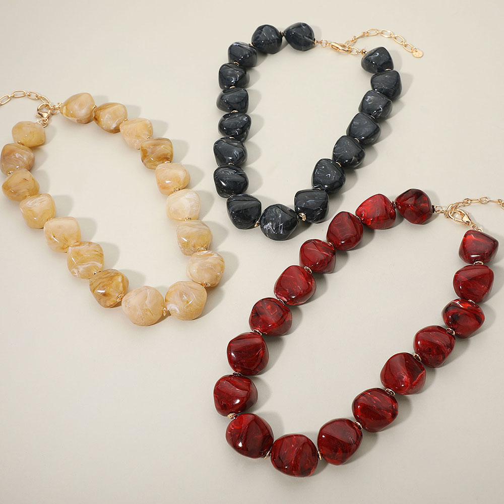 Details • Necklace Size : 19" + 4" L • Decor Size : 1" L • Contemporary pebble bead bracelet featuring smooth marbled beads in a chic, organic shape. Designed with an adjustable chain for a perfect fit, this stylish bracelet adds a modern touch to both casual and elegant looks, making it a versatile jewelry essential. • Lead and Nickel Compliant