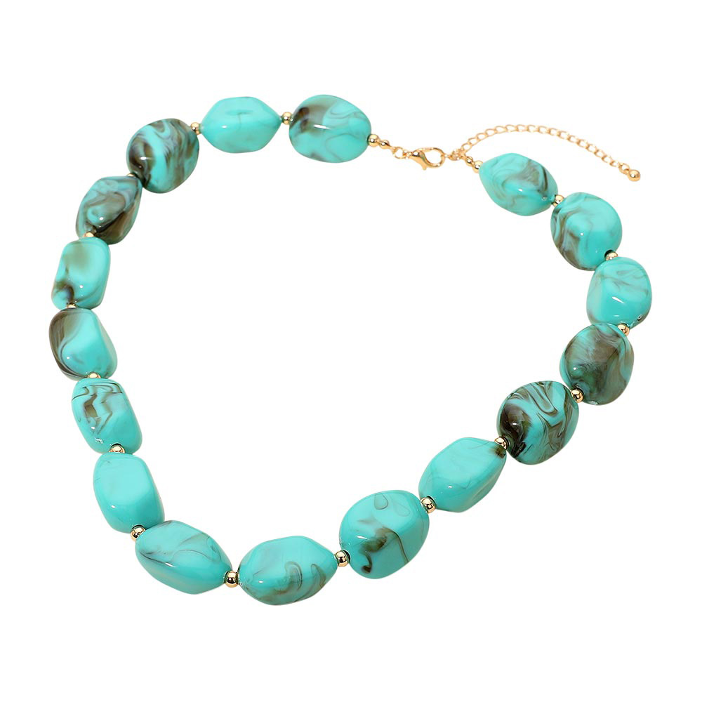 Details • Necklace Size : 18" + 3" L • Decor Size : 0.75" L • This chunky statement necklace features smooth marbled beads that add bold style to any outfit. Its unique texture and striking design make it perfect for elevating everyday looks or complementing special occasion wear, offering a fashionable accent that stands out with modern charm. • Lead and Nickel Compliant
