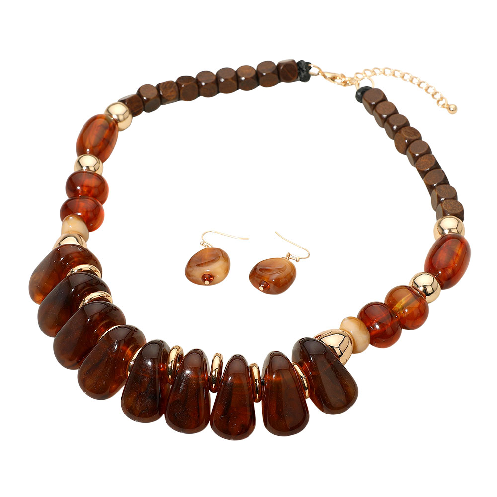 • Elevate your style with this chunky beaded necklace and matching earrings featuring smooth stone-inspired accents. Perfect for casual or dressy occasions, this statement jewelry set adds a touch of earthy sophistication and modern charm to any outfit with its bold, natural aesthetic.