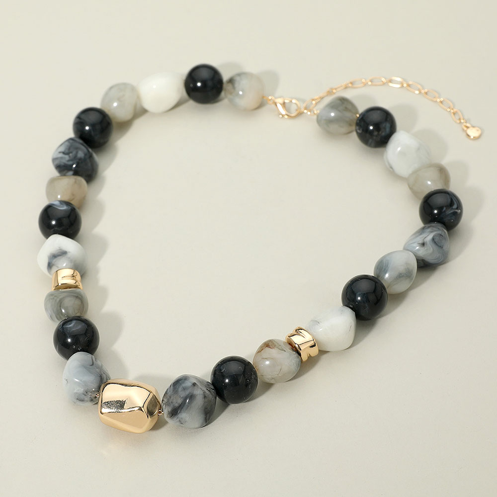Chunky Metal Accent Resin Pebble Beaded Statement Necklace Chunky Metal Accent Resin Pebble Beaded Statement Necklace