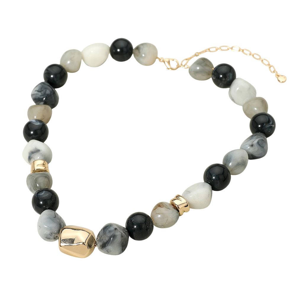 Chunky Metal Accent Resin Pebble Beaded Statement Necklace