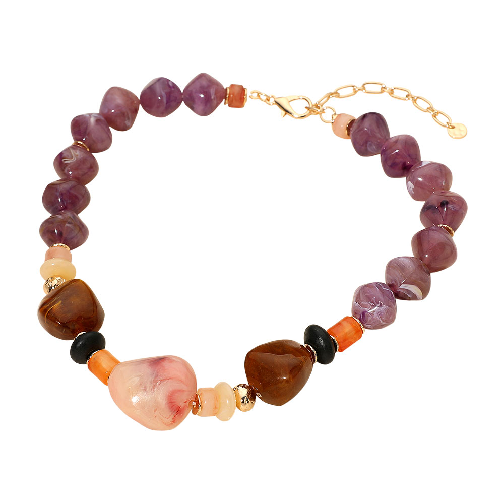 Details • Necklace Size : 20.5" + 3" L • Decor Size : 1" L • Stylish necklace featuring a mix of smooth and irregular beads in a balanced color pattern with a secure adjustable clasp. Perfect for everyday wear or layering with other accessories. Adds a touch of artistic charm and elegance to any outfit, making it a versatile jewelry staple. • Lead and Nickel Compliant