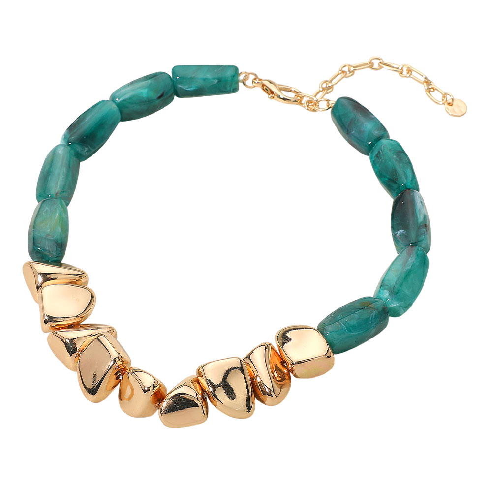 Chunky Polished Metal Marbled Resin Pebble Beaded Statement Necklace