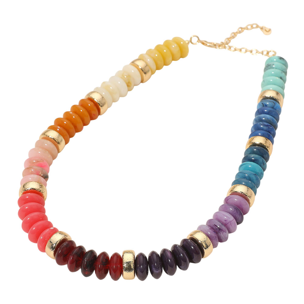 Details • Necklace Size : 17" + 3" L • Decor Size : 0.6" L • Bold and contemporary, this chunky beaded necklace features smooth disc-shaped beads with metallic gold-tone spacers. A versatile statement piece that elevates any outfit with its sleek, modern design. • Lead and Nickel Compliant