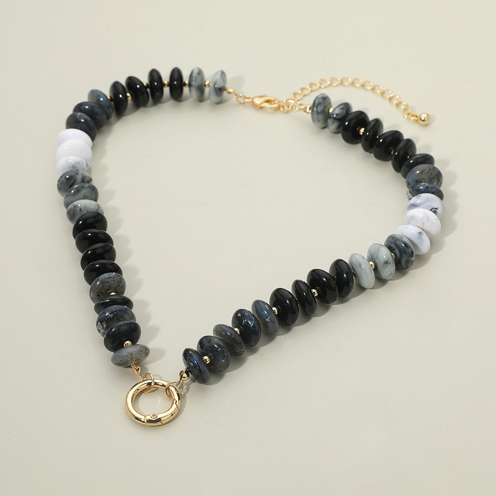 • Make a bold yet refined statement with this elegant beaded necklace featuring polished round accents and a sleek clasp. Perfect for elevating casual or dressy looks, this piece adds a modern touch of artistry and sophistication to any jewelry collection.