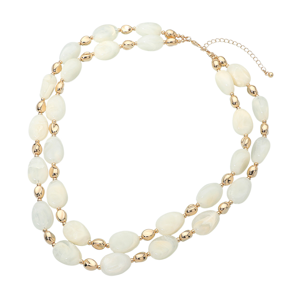 • Stylish layered necklace featuring smooth oval beads paired with polished accent details for a dimensional, eye-catching look. Designed to sit beautifully at the neckline, this statement piece adds depth and elegance to everyday outfits, workwear, or elevated styling while remaining easy to layer or wear on its own.