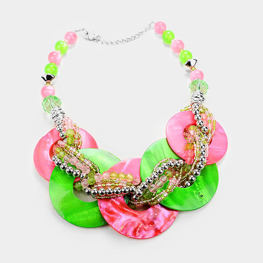 • Make a bold impression with this layered beaded statement necklace and matching earrings set. Designed with oversized circular accents and mixed bead strands, it adds vibrant energy and artistic flair to any outfit, perfect for elevating casual or evening looks effortlessly.