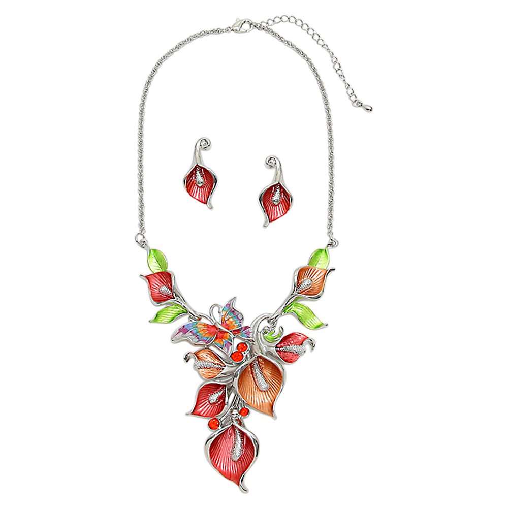 Rhinestone Embellished Butterfly Pendant Accented Tennis Chain Evening Necklace