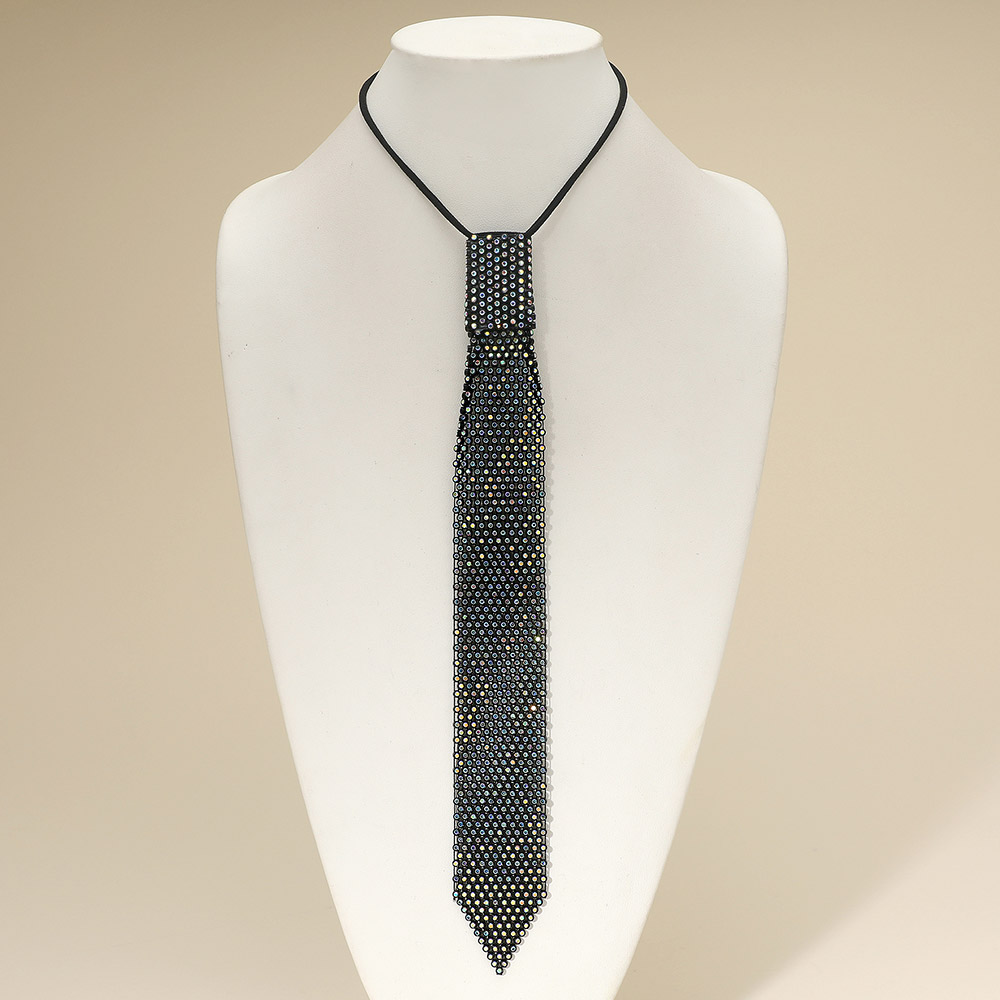 • Add a bold sparkle to your outfit with this crystal-embellished tie necklace featuring an adjustable strap for a perfect fit. Its sleek design and shimmering detail make it ideal for parties, concerts, or nights out, giving any look a chic and edgy finishing touch.