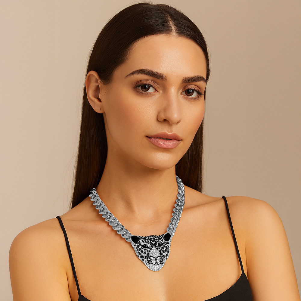 Stainless Steel Heart Lock Clover Key Pendant Necklace