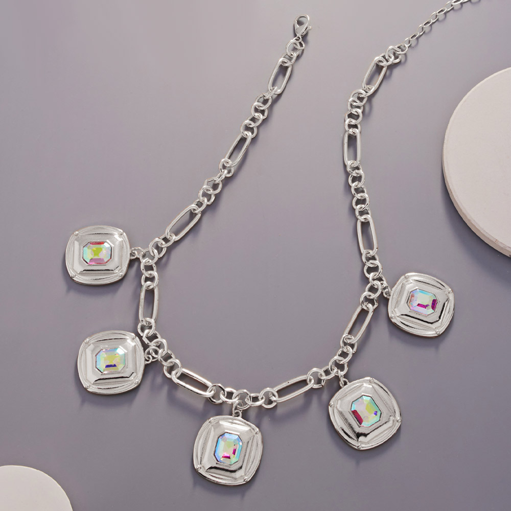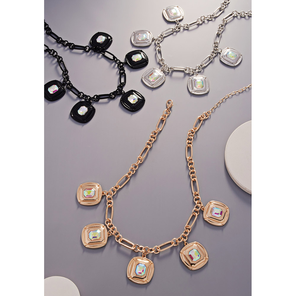 Rose Gold Dipped CZ Rectangle Pendant Necklace