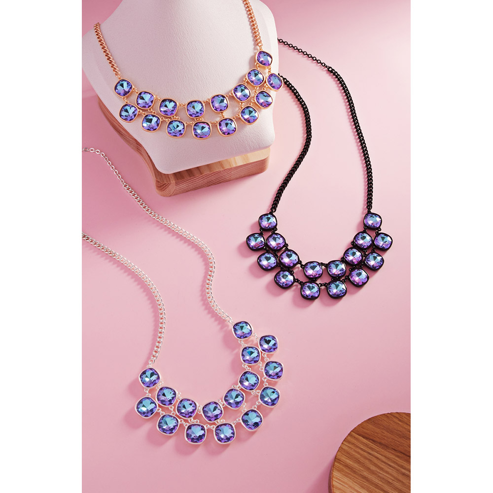 3PCS - Crystal Rhinestone Pave Plate Metal Necklace Jewelry Set