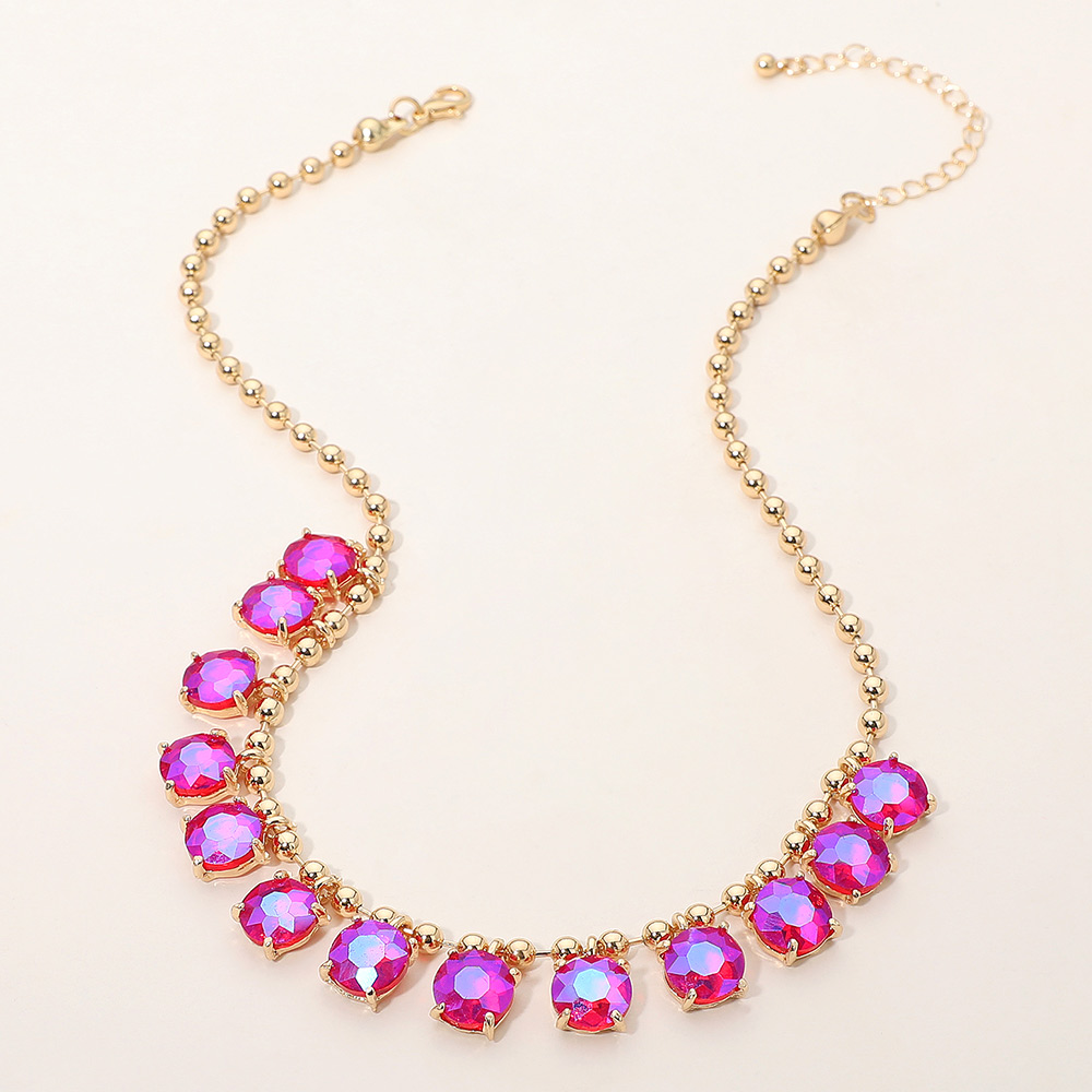 • Elegant necklace featuring a delicate beaded chain accented with faceted round stones arranged along the neckline. Designed to add refined sparkle and balanced detail, this versatile piece suits everyday wear, special occasions, gifting, and boutique collections with a timeless, polished appeal.