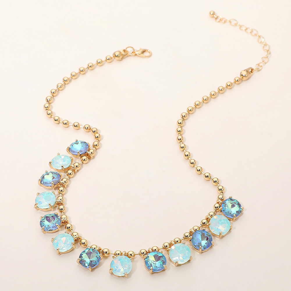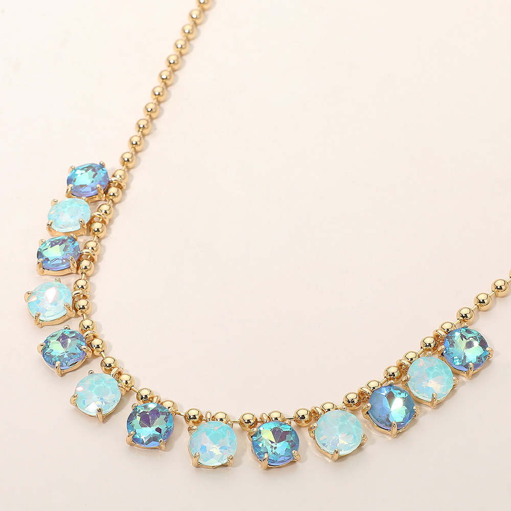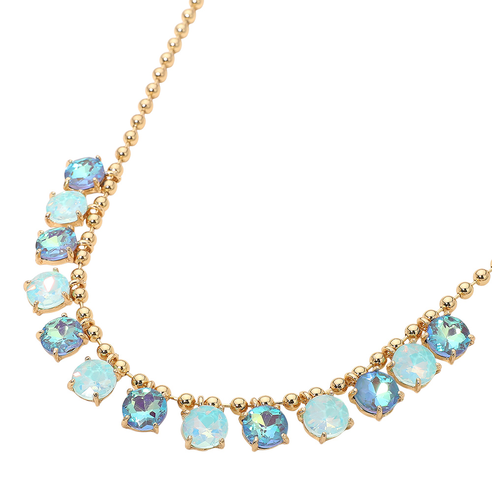 • Elegant necklace featuring a delicate beaded chain accented with faceted round stones arranged along the neckline. Designed to add refined sparkle and balanced detail, this versatile piece suits everyday wear, special occasions, gifting, and boutique collections with a timeless, polished appeal.