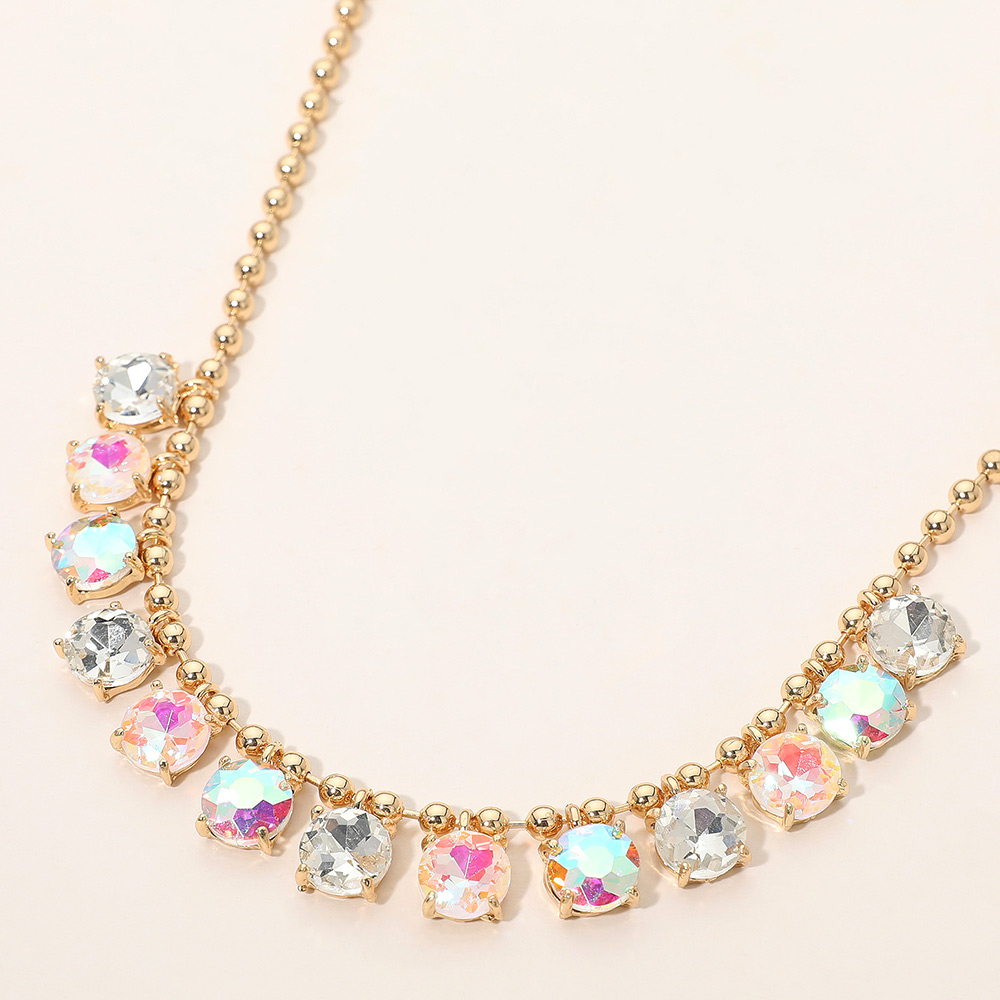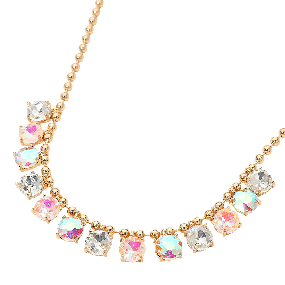 • Elegant necklace featuring a delicate beaded chain accented with faceted round stones arranged along the neckline. Designed to add refined sparkle and balanced detail, this versatile piece suits everyday wear, special occasions, gifting, and boutique collections with a timeless, polished appeal.