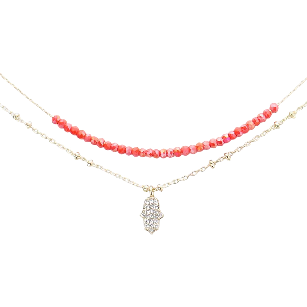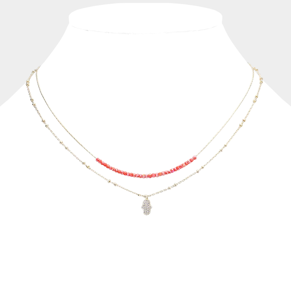 Double Layered Brass Metal CZ Hamsa Hand Pendant Necklace