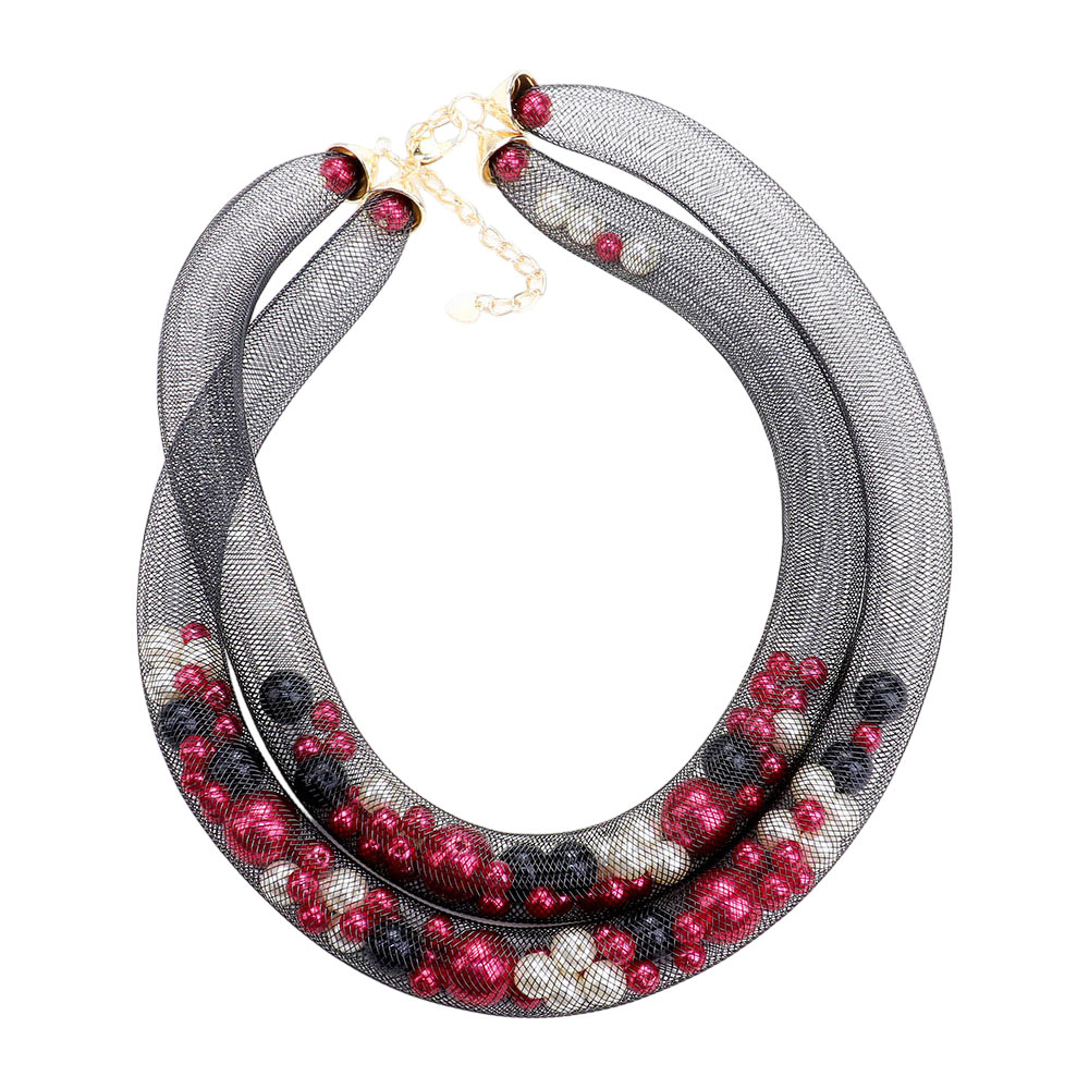 Pearl Accented Triple Layered Mesh Bib Necklace