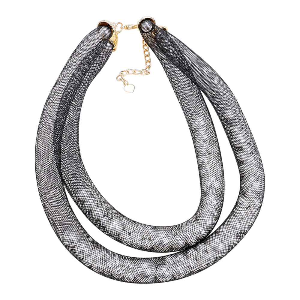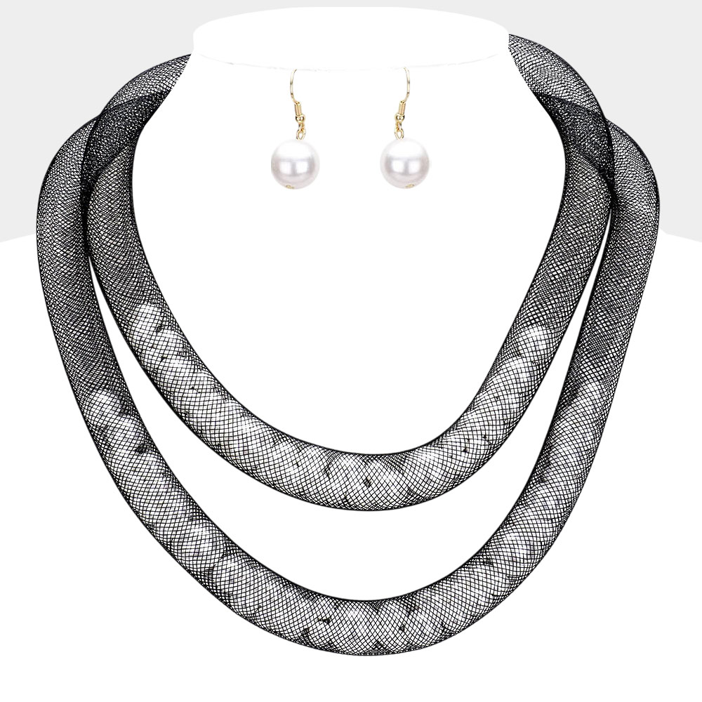 Pearl Accented Triple Layered Mesh Bib Necklace