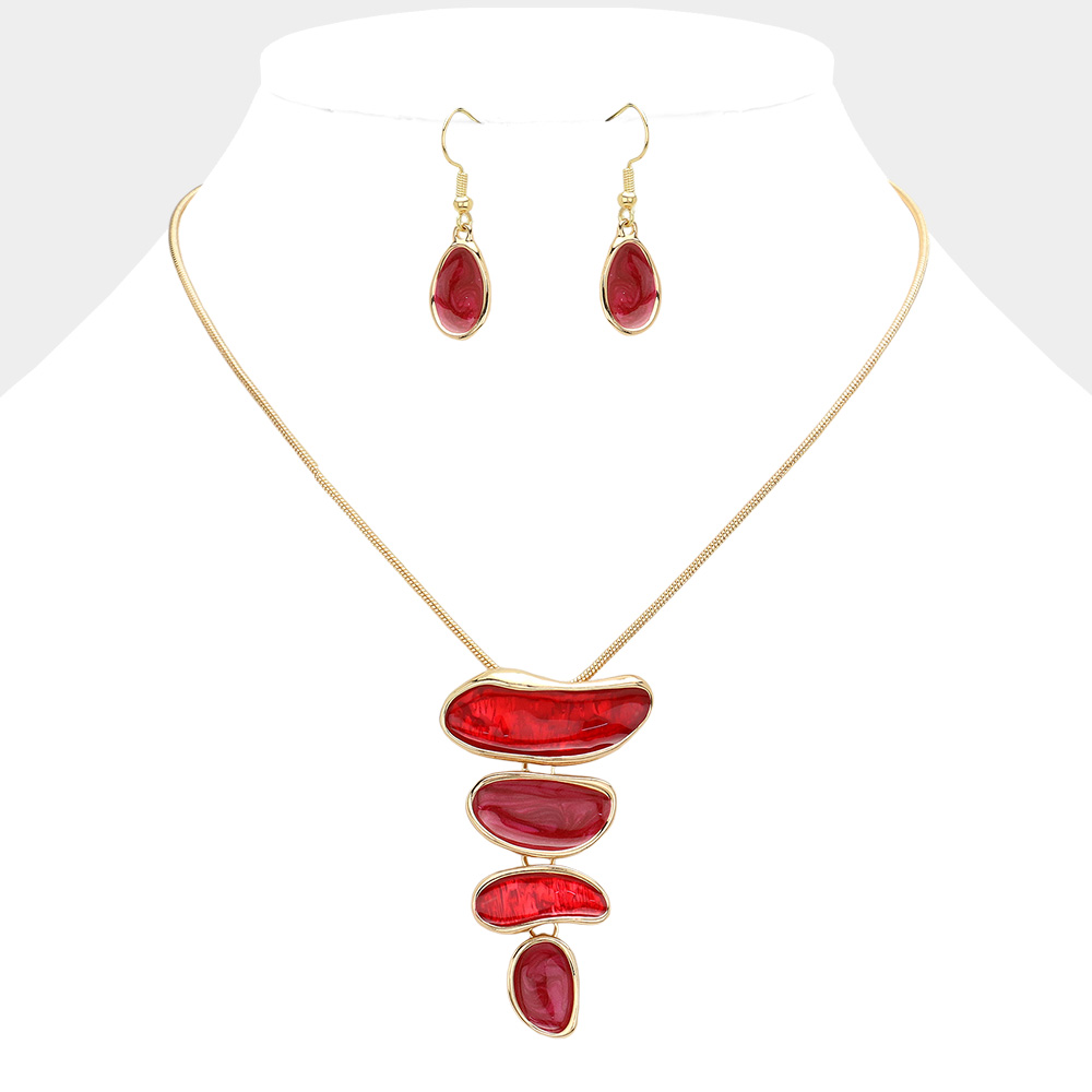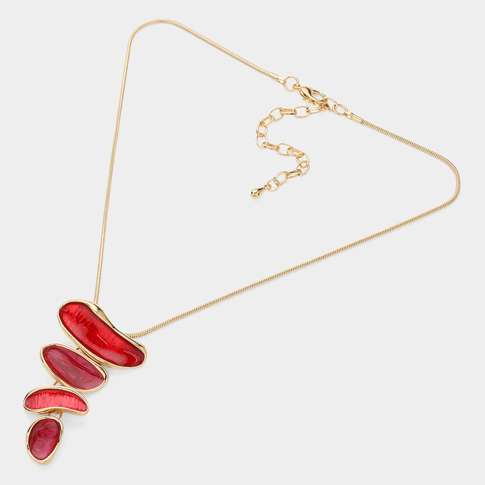 Enamel Abstract Pebble Plate Link Pendant Necklace