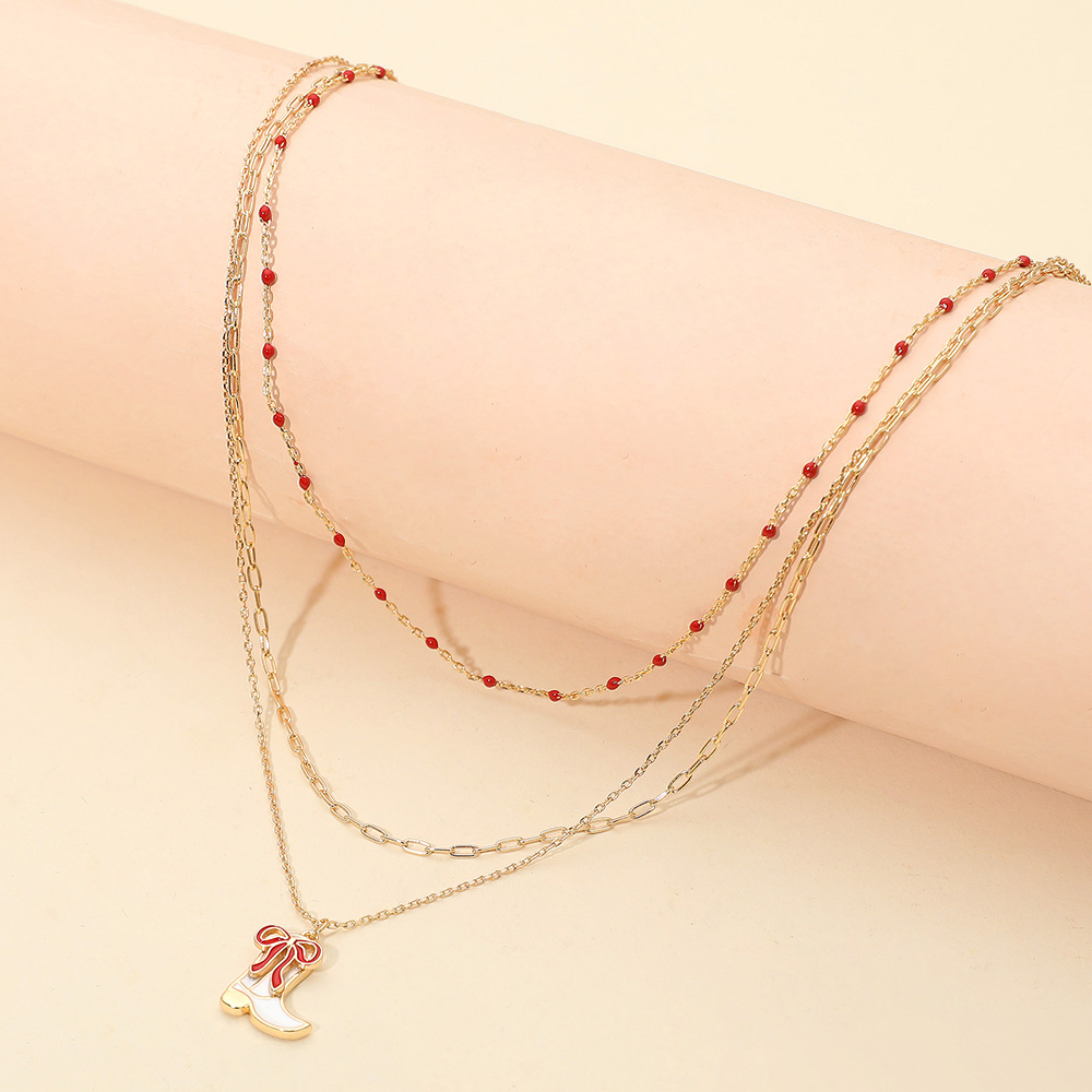 Enamel Bow Cowboy Boot Pendant Triple Layered Necklace Enamel Bow Cowboy Boot Pendant Triple Layered Necklace Enamel Bow Cowboy Boot Pendant Triple Layered Necklace