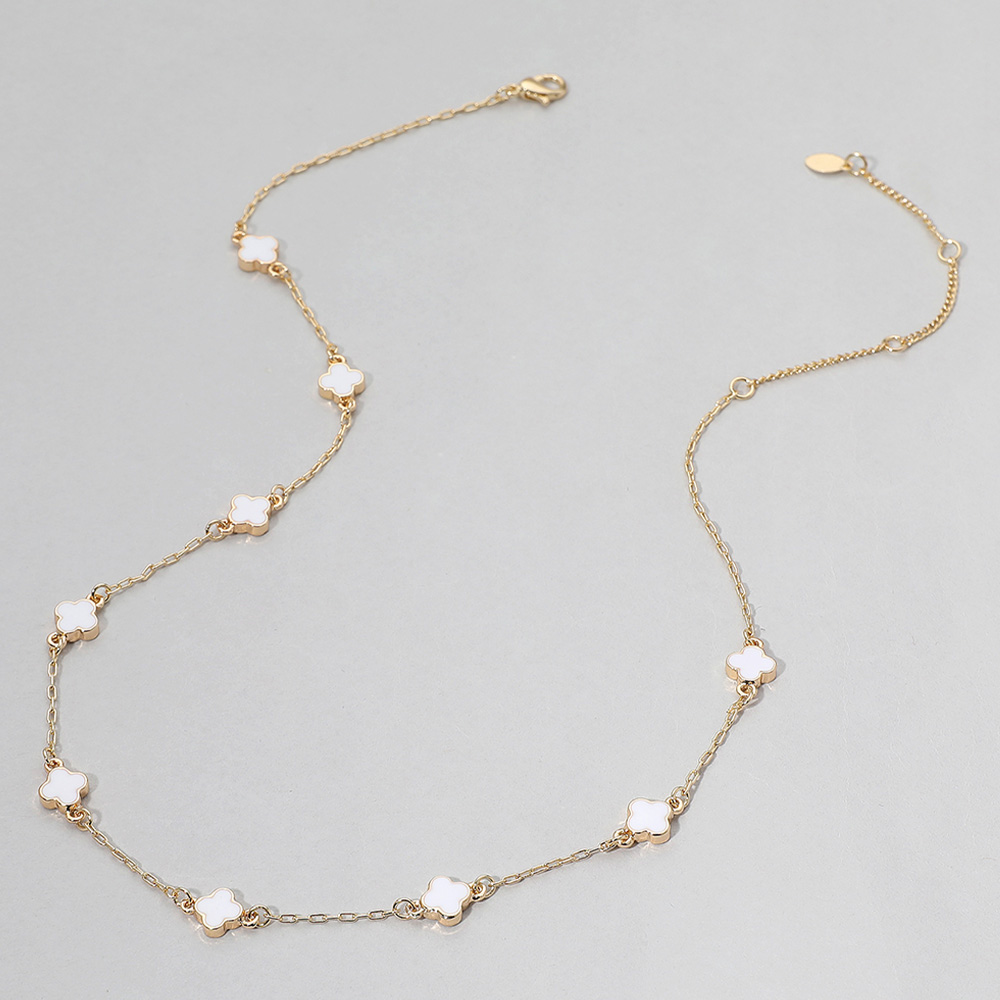 Stone Rim Enamel Quatrefoil Tip Cuff Bracelet