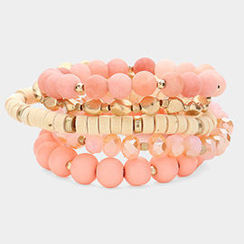 4PCS- Wooden Metal Ball Beaded Stretch Multi Layered Bracelets