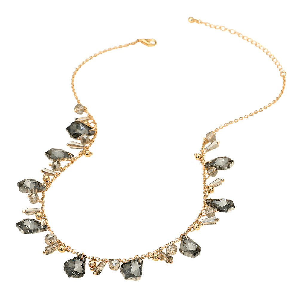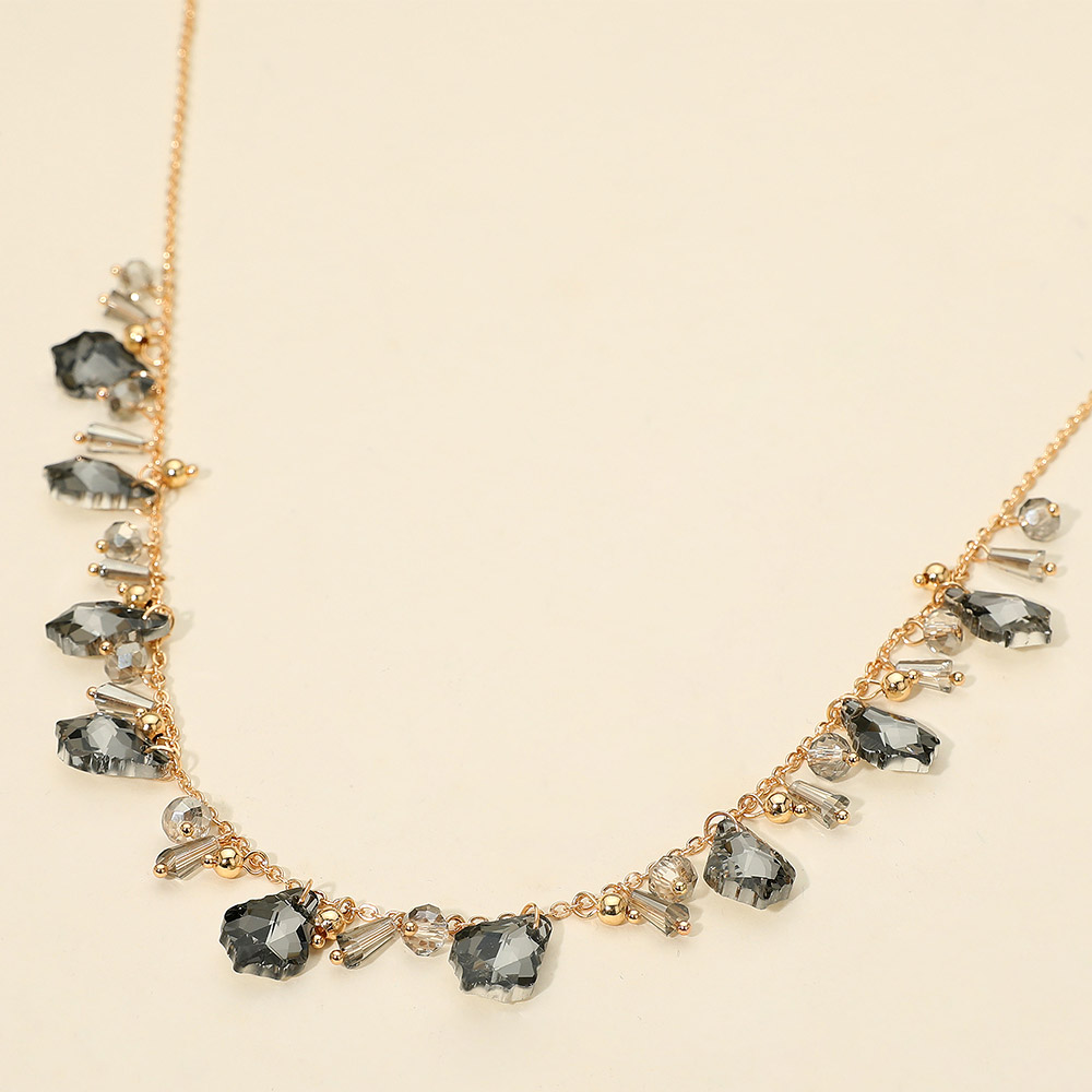Details • Necklace Size : 16.5" + 3" L • Decor Size : 0.75" L • Chic necklace featuring assorted faceted bead drops along a delicate chain. Perfect for elevating casual or evening outfits with a subtle yet sophisticated sparkle. • Lead and Nickel Compliant