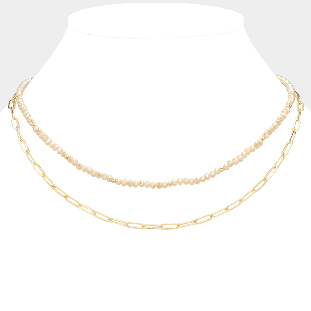 Faceted Beaded Metal Paperclip Chain Layered Necklace