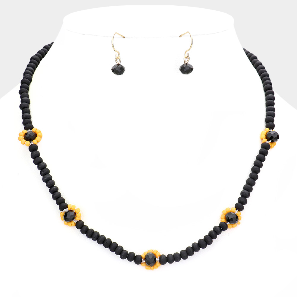 Faceted Floral Accent Wooden Beaded Necklace Faceted Floral Accent Wooden Beaded Necklace Faceted Floral Accent Wooden Beaded Necklace