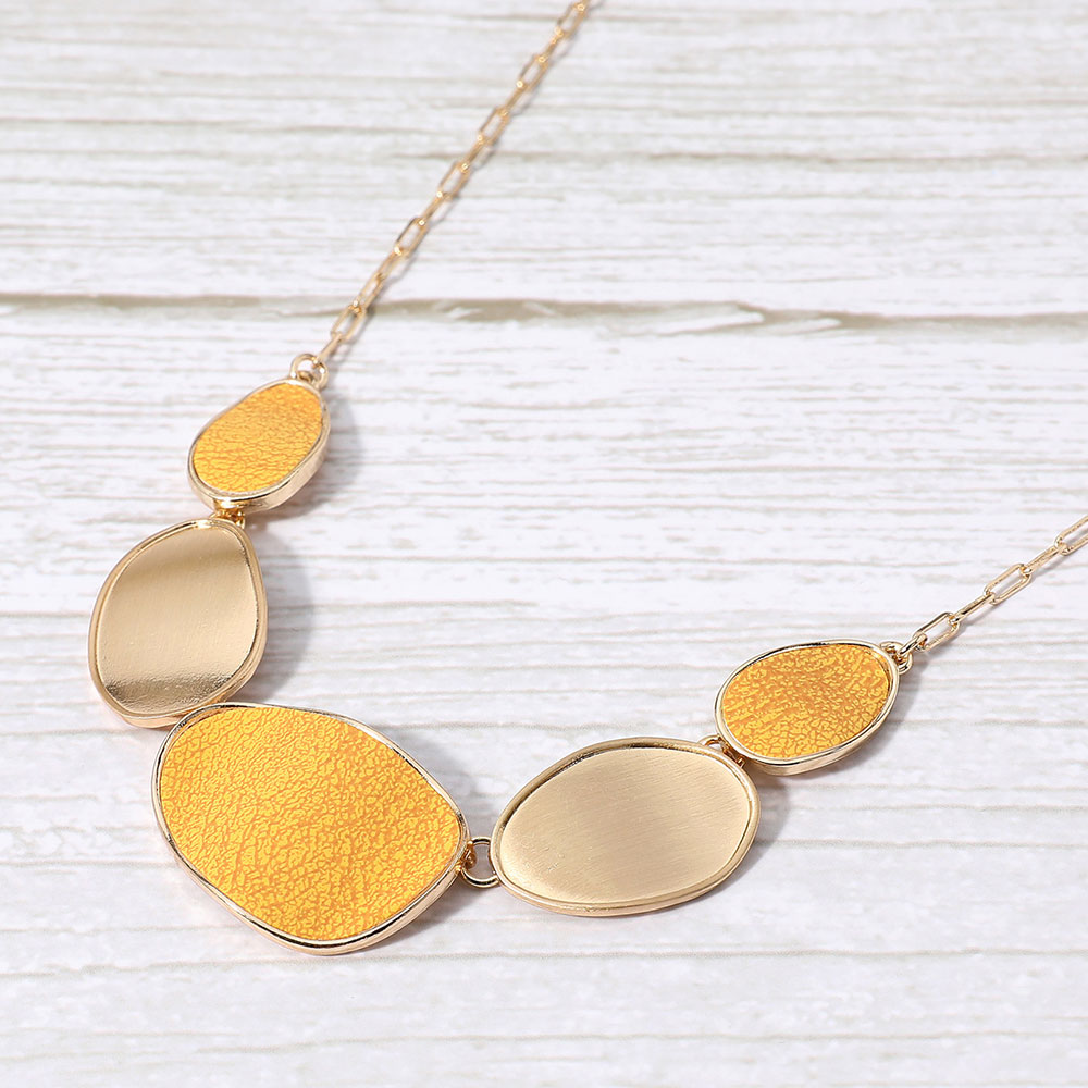 Faux Leather Metal Abstract Plate Link Dangle Earrings
