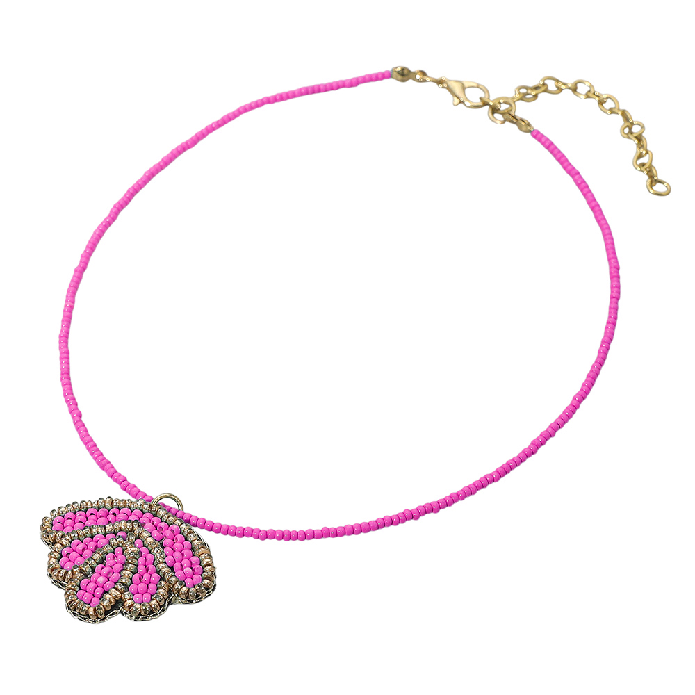 Felt Back Seed Beaded Shell Pendant Necklace